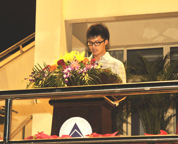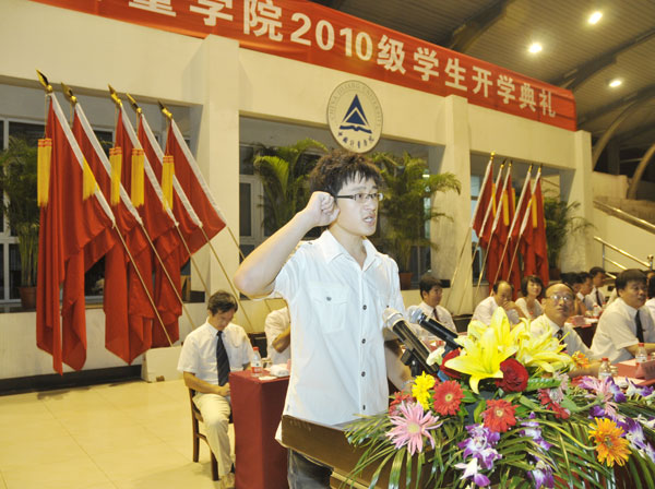 老生代表、校學生會副主席、現代科技學院浩劍鋒,新生代表、量新學院焦亮分別發言。在機電工程學院學生劉兵的帶領下,全體新生在開學典禮上作了莊嚴的入學宣誓。