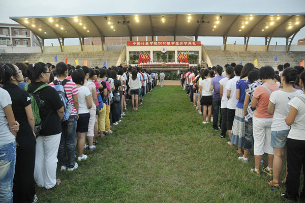 9月13日,量院的夜空下,璀璨的煙花映襯著一張張年輕的笑臉,他們將開啟人生又一個嶄新的夢想之旅。我校2010級新生開學典禮在北田徑場隆重舉行。學校全體黨政領導出席大會,并親自為新生代表配戴校徽,與全體新生共同見證這難忘的一刻。