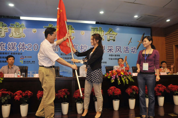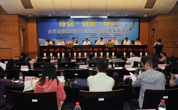 由浙江在線新聞網站主辦的“詩意·奮進·融合——全國主流媒體2010年浙江高校行”大型采訪活動于9月25日在我校正式啟動。省委宣傳部副部長、外宣辦主任呂建楚,省教育廳副巡視員、新聞發言人夏建勇,浙江在線管委會主任、黨委書記項寧一,我校黨委書記于永明,黨委副書記陶偉華等領導出席啟動儀式。儀式由浙江在線網絡傳媒有限責任公司總經理應中迪主持。
