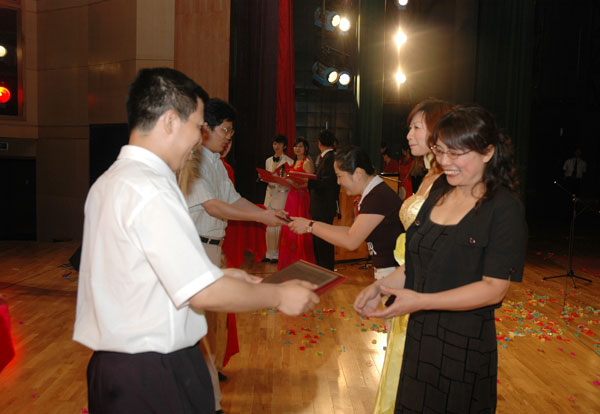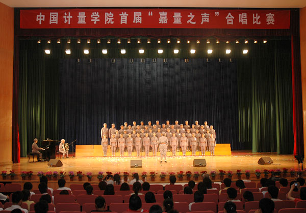 為隆重紀念建軍八十周年、香港回歸十周年,宣傳我黨我軍艱苦奮斗、百折不回的革命精神,大力弘揚以愛國主義為核心的民族精神,發揚大無畏的不屈不撓的革命樂觀主義精神,進一步激勵全校廣大師生堅定信念、振奮精神、凝聚力量,為構建和諧量院,實現學校又好又快的發展而努力奮斗,5月30日下午,由校黨委宣傳部、校工會聯合舉辦的首屆“嘉量之聲”合唱比賽在嘉量大會堂隆重拉開帷幕。學校18個分工會代表隊參加了比賽。校長林建忠,黨委副書記、紀委書記于永明,黨委副書記徐涌金,副校長馮時林,黨委委員、黨校辦主任陶偉華前來觀看了比賽。   此次合唱比賽的主題是:弘揚民族精神,共建和諧量院。比賽得到了學校各分工會的高度重視,各分工會在賽前都做了充分的準備,使整場比賽參與面廣、形式豐富多彩、整體水平較高。臺上參賽隊用歌聲來歌唱我們的祖國,祝愿祖國更加繁榮富強,臺下評委和觀眾不時對新穎的形式報以熱烈的掌聲,對優美的歌聲贊嘆不已。經過激烈的角逐,機關、計量測試工程學院奪得了一等獎,機電工程學院、后勤服務公司、人文社科學院獲得二等獎,成人教育學院、外國語學院、質量與安全工程學院、現代科技學院、光學與電子科技學院等五個參賽隊獲得了三等獎。校長林建忠,黨委副書記、紀委書記于永明,黨委副書記徐涌金,副校長馮時林分別為獲獎單位頒獎。   浙江省新四軍研究會合唱團還為我校首屆“嘉量之聲”合唱比賽帶來了精彩的表演。
