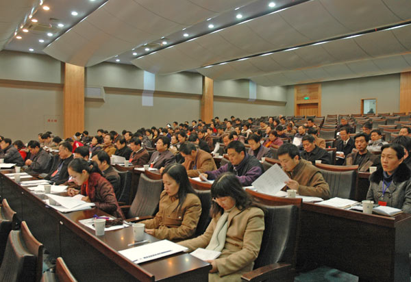 “林建忠校長在工作報告中提出的十項工作把2008年學校工作的主要思路清晰地勾勒出來了。我們感到非常振奮人心,我們對學校未來的發展充滿了信心。”一位教職工代表在聽完林校長的報告后激動地說。12月29日,中國計量學院六屆二次教代會暨八屆二次工代會隆重舉行。黨委書記于永明發表重要講話,校長林建忠作學校工作報告。這次大會是我校政治生活中的一件大事,也是廣大教職工普遍關心的一件大事,共有來自學校各個層面的122名代表參加了大會。   上午九點,大會在學校聞廳二樓會議室隆重開幕。于永明、林建忠、徐涌金、張碩年、侯宇、馮時林等學校黨政領導,黨委委員、黨辦校辦主任陶偉華,黨委委員、人事處處長陳希武出席大會。開幕式由大會執行主席張碩年主持。   校長林建忠向大會作了題為《深入貫徹科學發展觀 大力推進和諧校園建設 為實現學校“十一五”時期的發展目標奠定堅實基礎》的學校工作報告。報告全面回顧了2006年7月以來學校的主要工作及辦學成果,主要表現在重視提高教學水平,標志成果初見端倪;切實抓好學科建設,學科水平穩步提升;大力提升創新能力,科研實力明顯增強;著力建設師資隊伍,人才結構不斷優化;努力抓好招生就業,社會影響日趨擴大;充分重視開放辦學,對外合作力度加大;注重強化內部管理,工作水平不斷提高等七個方面。針對2008年的學校工作,林建忠提出了明確的工作思路和工作任務。他強調,2008年,學校要全面貫徹落實黨的十七大精神,堅持科學發展觀,圍繞“以發展求和諧,以和諧促發展”的主題,把“提高質量、辦出特色、嚴格管理”作為主要任務,切實抓好十項工作。一是推進教學質量工程的實施,二是加強學科學位平臺的建設,三是提高科研項目成果的水平,四是增強教師人才隊伍的實力,五是增大對外交流合作的力度,六是擴大招生就業領域的空間,七是深化內部管理工作的改革,八是加快校園基礎設施的建設,九是打造師生員工溫馨的家園,十是做好三十周年校慶的工作。十項工作思路明確、任務艱巨。林建忠號召大家奮發進取,勵精圖治,為早日把我校建成國內知名的教學研究型大學努力奮斗!   開幕式結束后,各代表團分組展開討論,認真審議《校長工作報告》、《工會工作報告》、《學校財務工作報告》和《2007年工會財務工作報告》,并將討論情況向主席團作了匯報。   黨委書記于永明在下午的閉幕式上作重要講話。黨委委員、黨辦校辦主任陶偉華作了教代會提案工作報告。會議通過了《中國計量學院六屆二次教職工代表大會暨八屆二次工會會員代表大會決議》。會議由校工會主席金國雄主持。   于永明在講話中指出,此次大會是在深入學習貫徹黨的十七大和省第十二次黨代會精神,加快實施學校五年發展規劃、實現建設國內知名的教學研究型大學的奮斗目標的關鍵時期召開的一次重要會議。為進一步貫徹落實好大會的精神,做好2008年的工作,于永明提出了兩點要求。第一是要以科學發展觀統領學校工作。要堅持以鄧小平理論和“三個代表”重要思想為指導,全面深入貫徹科學發展觀。要進一步調整優化學校的學科專業布局和人才培養模式,強化辦學特色和優勢,提高辦學質量和辦學效益,努力實現規模、質量和效益的和諧統一。要堅持實踐“計量立校、標準立人、質量立業”的辦學理念,緊緊圍繞人才培養這一根本,以教學為中心,充分發揮教師和學生的“雙主體”作用。第二是要以求真務實和改革創新精神推進學校工作。一要繼續強化教學質量建設,二要強化特色優勢學科建設,三要強化科學管理。他強調,學校工作報告中提出了2008年十個方面的重點工作,關鍵就在于要真抓實干,要以求真務實的作風和改革創新的精神認真做好2008年的各項工作。最后,于永明要求各單位、各部門要及時傳達會議精神,增強廣大教職工的主人翁精神,將廣大教職工的思想和行動統一到學校的發展目標和工作任務上來,統一到學校改革發展的大局上來;要求各位代表要繼續履行好職責,深入全校師生員工,了解思想動態,反映群眾呼聲,切實發揮好代表作用,為學校改革發展做出新的貢獻。他號召,全校教職員工要在校黨委的領導下,堅持以科學發展觀為指導,振奮精神、齊心協力、奮發圖強、開拓創新、扎實工作,為把學校建設成為國內知名的教學研究型大學而努力奮斗!   會議還對獲得我校首屆“教工小家”先進單位稱號的機電工程學院、計量測試工程學院、法學院、經濟與管理學院、理學院進行了表彰。   最后,大會圓滿完成各項議程,在莊嚴的《國際歌》中勝利閉幕!
