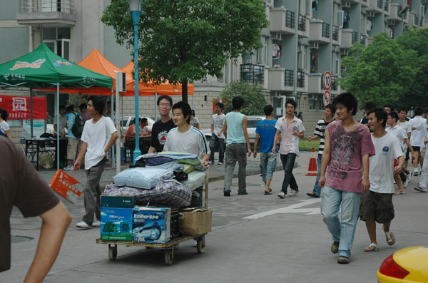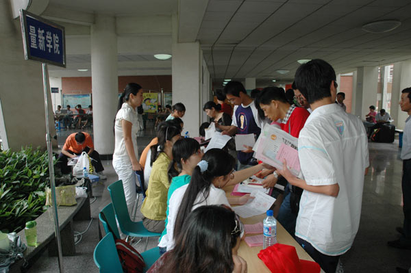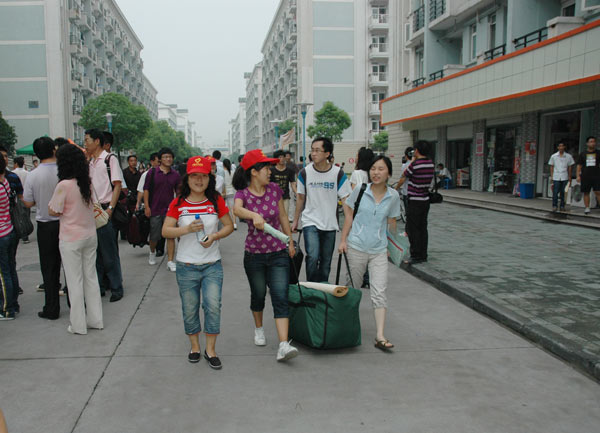 盼望著!盼望著!9月5日,學校終于迎來了08級新生。來自全國30個省市區的5345名新同學將于這三天從祖國的四面八方相聚在這里,共同撐起量院美好的明天!   一批一批的新生,在家長、親朋好友的陪同下陸陸續續地走進量院的校園,雖然他們一路長途跋涉,但是激動喜悅的心情卻讓他們樂此不疲!   根據學校安排,今年迎新工作時間為9月5日8:00至9月7日24:00,其中量新學院學生報到時間為9月5日,其他普通本科新生、研究生新生報到時間為9月6日,獨立學院本科新生報到時間為9月7日。   5日一大早,接站工作已正式啟動,報到接待各攤位都已準備到位,志愿者們也早已等候在學校門口,大家都以飽滿的熱情和周到的服務迎接一批又一批的新生。將近中午,校園里、生活區里隨處可見新生和家長的身影。負責新生報到的老師、學長學姐和志愿者們或是熱情洋溢的與新同學們交流著,攀談著;或是耐心的解答新生家長的問題;或是積極主動的幫新生把行李搬往宿舍……以下是記者從報到現場發回的圖片報道: