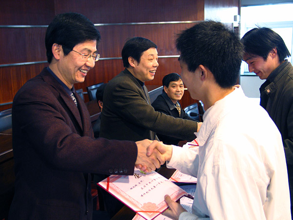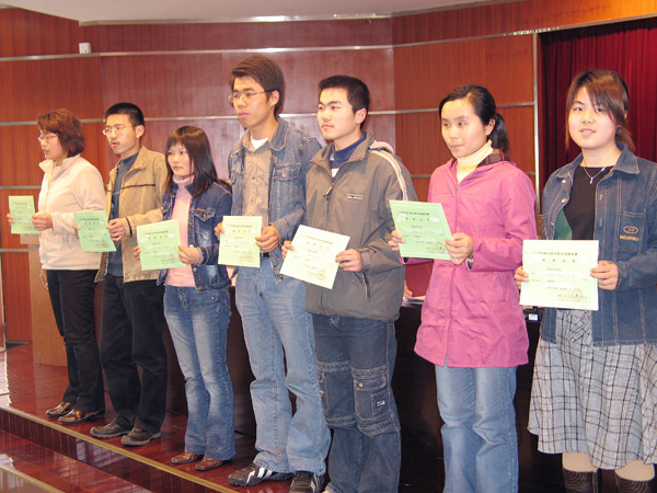 學(xué)校領(lǐng)導(dǎo)和有關(guān)職能部門負(fù)責(zé)人為我校第五屆青年教師講課比賽,第二屆教師多媒體課件制作大賽的獲獎(jiǎng)教師和我校參加2004年全國(guó)大學(xué)生數(shù)學(xué)建模競(jìng)賽、第一屆全國(guó)大學(xué)生機(jī)械創(chuàng)新設(shè)計(jì)大賽、第一屆浙江省大學(xué)生機(jī)械設(shè)計(jì)競(jìng)賽、浙江大學(xué)“海特杯”第九屆大學(xué)生機(jī)械設(shè)計(jì)競(jìng)賽、第一屆浙江省大學(xué)生程序設(shè)計(jì)競(jìng)賽、第三屆浙江省大學(xué)生多媒體作品設(shè)計(jì)競(jìng)賽、2004年浙江省大學(xué)生高等數(shù)學(xué)(微積分)競(jìng)賽的獲獎(jiǎng)同學(xué)頒了獎(jiǎng)。