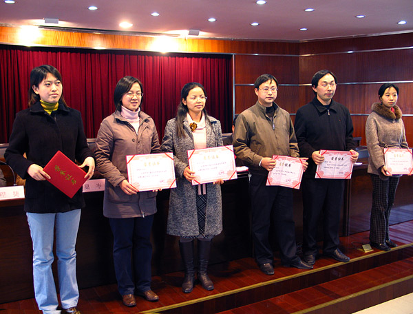 侯宇副校長(zhǎng)宣讀了《關(guān)于表彰中國(guó)計(jì)量學(xué)院第五屆青年教師講課比賽獲獎(jiǎng)?wù)叩臎Q定》和《關(guān)于公布中國(guó)計(jì)量學(xué)院第二屆教師多媒體課件制作大賽獲獎(jiǎng)作品的通知》,徐涌金副書記宣讀了《關(guān)于公布我校參加2004年全國(guó)大學(xué)生數(shù)學(xué)建模等學(xué)科性競(jìng)賽獲獎(jiǎng)結(jié)果的通知》。