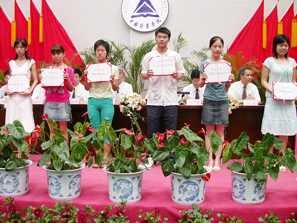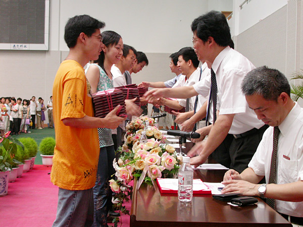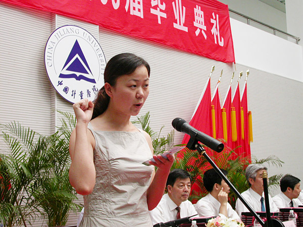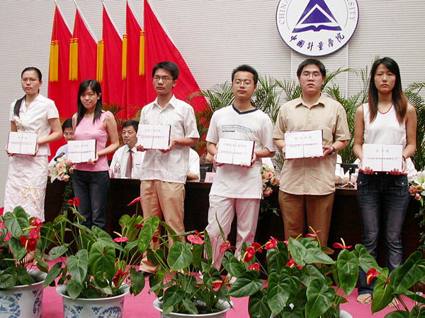侯宇在典禮上宣讀了《中國(guó)計(jì)量學(xué)院關(guān)于表彰2005屆省級(jí)、校級(jí)優(yōu)秀畢業(yè)生的通知》,并宣布了省級(jí)優(yōu)秀畢業(yè)生名單。學(xué)校領(lǐng)導(dǎo)為省級(jí)和校級(jí)優(yōu)秀畢業(yè)生代表頒發(fā)了榮譽(yù)證書,為本科畢業(yè)生代表頒發(fā)了學(xué)位證書和畢業(yè)證書。