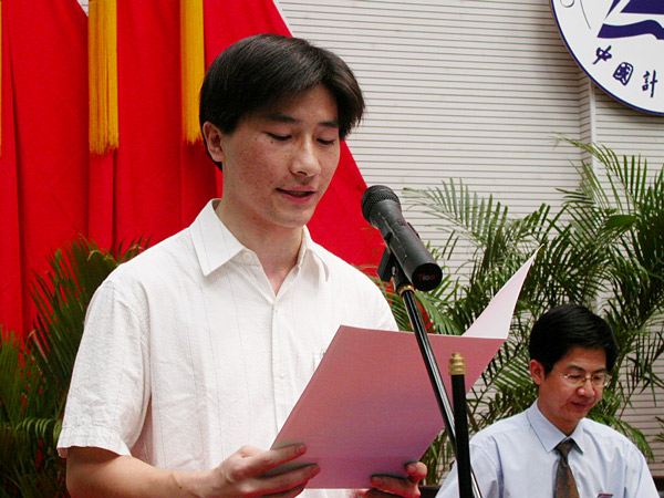 信息工程學(xué)院副院長(zhǎng)陳曉竹在畢業(yè)典禮上代表教師發(fā)言,表達(dá)了全校教師對(duì)廣大畢業(yè)生的衷心祝愿和殷切期盼。法學(xué)院01法2班徐斌同學(xué)代表畢業(yè)生發(fā)言,祝愿學(xué)校的明天更輝煌,同學(xué)們的明天更美好。理學(xué)院湯芳麗同學(xué)帶領(lǐng)全體畢業(yè)生許下了“銘記老師教誨,履行時(shí)代使命,以國(guó)家利益為重,崇尚科學(xué),追求真理,團(tuán)結(jié)、嚴(yán)謹(jǐn)、勤奮、進(jìn)取,做有益于人民的人,為母校爭(zhēng)光,為祖國(guó)昌盛、人類進(jìn)步奮斗終身”的莊嚴(yán)的誓言。