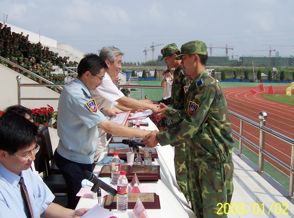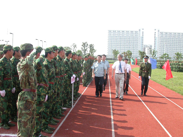 經過為期7天的緊張訓練,9月1日上午,我校在北田徑場隆重召開了2005年學生軍事訓練匯報表演暨總結表彰大會。黨委書記姚盛德,黨委副書記、常務副校長方志剛,黨委副書記、紀委書記于永明,黨委副書記徐涌金,副校長張碩年、呂進等學校領導和空軍28師副師長戴忠茂、政治部副主任黃兵、后勤部副部長姚益謀等部隊領導出席了表彰大會。會議由副校長侯宇主持。