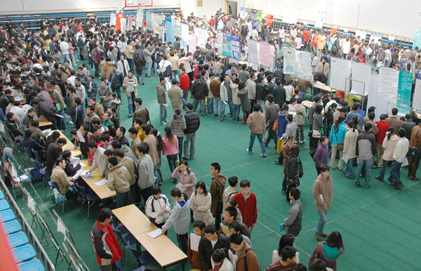 除了前來應聘學生眾多外,此次招聘會還有著自己的特點:如前來參會的并不是一家獨立的企業或公司,而是以一個集體或者團隊的形式出現,共同前來招納良才;外地高校專門派了三輛大巴把本校的畢業生送到我校來參加這次招聘會;兄弟院校的教師也專程前來會場了解用人單位的需求,向用人單位推薦符合專業要求的畢業生。