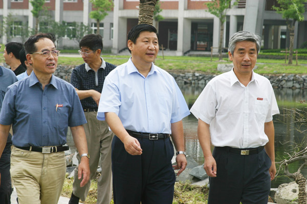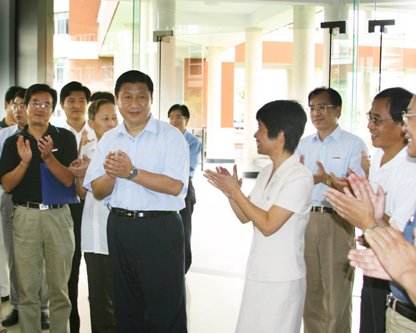 9月8日上午,浙江省委書記習(xí)近平在省委副書記梁平波,副省長盛昌黎,省委教育工委書記、省教育廳廳長侯靖方,省教育廳副廳長鄭繼偉等領(lǐng)導(dǎo)的陪同下來我校視察工作,并向全校教職員工表示第二十個教師節(jié)慰問!學(xué)校黨政領(lǐng)導(dǎo)姚盛德、莊松林、方志剛、于永明、張碩年、呂進(jìn)、侯宇、陳宏碩,校長助理徐涌金等同志陪同習(xí)近平書記一行參觀了風(fēng)景如畫的校園。   在視察中,習(xí)近平書記向?qū)W校黨委書記姚盛德和校長莊松林院士詢問了關(guān)于學(xué)校辦學(xué)特色、新校區(qū)建設(shè)、科學(xué)研究、人才培養(yǎng)等情況,并對教職員工在學(xué)校搬遷至下沙高教園區(qū)后的住宿、交通等生活問題表示了極大的關(guān)心。   在計量技術(shù)工程學(xué)院,習(xí)近平書記親切會見了為學(xué)校建設(shè)和發(fā)展做出卓越貢獻(xiàn)的部分教授、學(xué)科帶頭人和海外歸來的學(xué)者、博士,并指出學(xué)校的快速發(fā)展和全省高等教育事業(yè)的蓬勃發(fā)展離不開廣大教育工作者的辛勤付出。在浙江省政協(xié)委員、省級優(yōu)秀教師鄭穎君教授代表全校教師匯報了學(xué)校教師工作情況以后,習(xí)近平書記作了重要講話,他指出,高教園區(qū)建設(shè)是成功的,中國計量學(xué)院是很有特色的,在管理體制轉(zhuǎn)變后有了顯著的變化,取得了顯著的成績,這里凝結(jié)了學(xué)校全體教職員工的汗水和辛勞。他還強(qiáng)調(diào),中國計量學(xué)院是我國質(zhì)量監(jiān)督檢驗檢疫行業(yè)唯一的一所本科院校,充實和完善了我省的教育領(lǐng)域。學(xué)校要在充分發(fā)揚原有“計量”特色的基礎(chǔ)上,積極培育多種特色學(xué)科,培養(yǎng)質(zhì)量監(jiān)督、檢驗檢疫、質(zhì)量管理等領(lǐng)域的專業(yè)人才,以富有特色的教育服務(wù)于浙江省的經(jīng)濟(jì)社會發(fā)展。   最后,習(xí)近平書記再次向全校教職員工表達(dá)了良好的節(jié)日祝愿,并與部分教師代表合影留念。