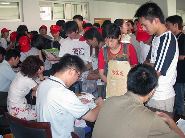 從今天凌晨開始,我校2004年迎新工作整套系統開始正式運行。學校各接站、接待、設攤單位人員全部就位,與往年相比,今年的迎新工作更有序,真正體現了一切為了學生、一切方便學生的宗旨。以下是本站記者從現場發回的圖片。