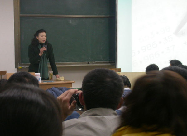 “你到大學來干什么?”,“你要把自己造就成一個怎樣的人?”,李丹青以這兩個問題開始了這場報告,這兩個問題也讓大家陷入了思考中。接著她又提出了“大家到試點班來干什么”這個問題,同時介紹了學校舉辦試點班的目的以及培養目標,那就是培養高水準考研、高水準就業、高水平的發展后勁的人才。