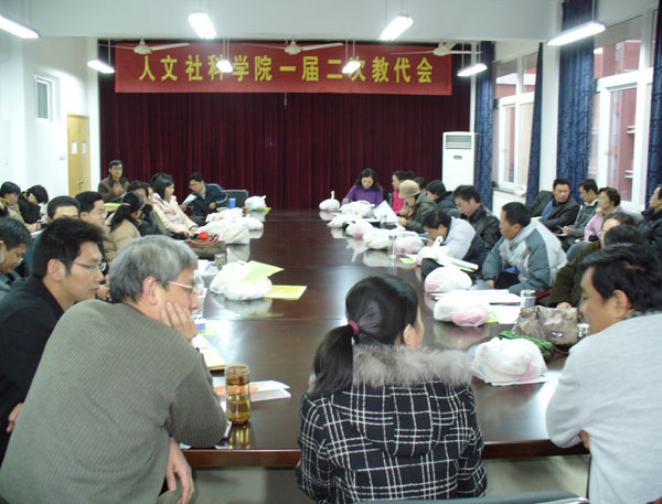 人文社科學院一屆二次教職工大會經(jīng)認真籌備,在提案征集、小組討論、預備會議的基礎上,于2005年12月15日在格致南樓205會議室勝利召開。學院42名正式教職工參加了會議。會議由人文社科學院工會副主席王丹主持。