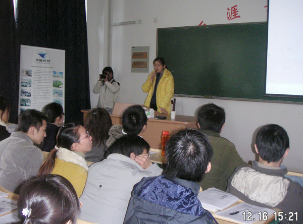 12月16日下午3:00,杭州華隆電子技術有限公司人力資源部招聘副總經理王道沖和公司相關部門主管一行四人來我校信息工程學院召開招聘宣講會。該公司是一家專業研制、生產電能測量儀表及相關自動化系統的高新技術企業。