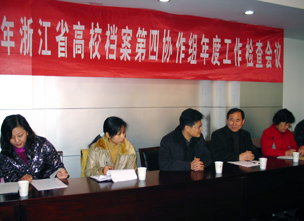 12月8日,2005年浙江省高校檔案第四協作組年度工作檢查會議在我校行政樓A313會議室召開。來自省教育廳檔案處、浙江大學檔案館、浙江工業大學檔案館以及省高校檔案第四協作組的專家與同行一行近20人參加了檢查會。我校分管檔案工作的領導陶偉華出席了會議。