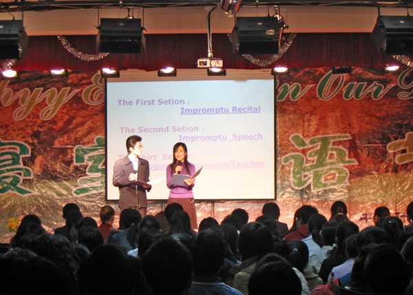 比賽中,六組選手展開了激烈的爭奪。比賽圍繞《寢室英語500句》進行,共分為英語詩歌和美文朗誦、英語即興抽題演講、和外教現場對話三部分,中間還穿插了每組選手精彩的英語才藝表演。飽滿的自信、流利的對話、通力的協作,選手們的表演超乎了所有觀眾的想象,博得了評委們的高度評價,也將本次寢室英語節“快樂英語和寢室團隊精神”的主題演義得淋漓盡致。最后,第四組6號西616寢室的大三選手技高一籌,奪得桂冠。