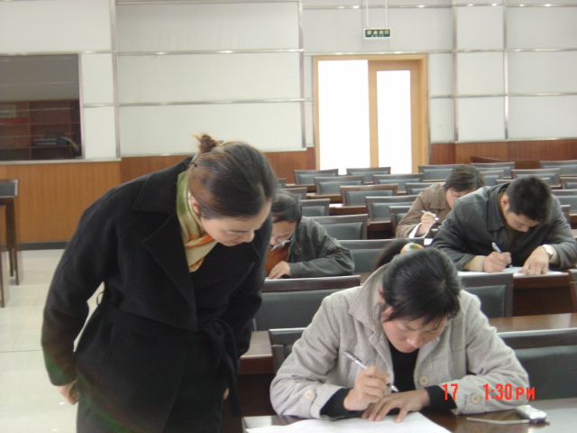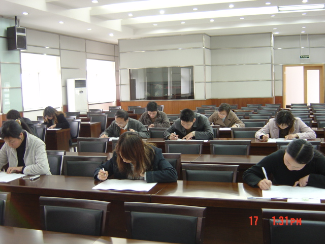 結合先進性教育活動,黨委組織部近期將進行優秀兼職組織員的評比。作為評比考察內容的一部分,11月18日下午,黨委組織部在明德樓B6樓會議室舉行了兼職組織員考試。   參加此次考試的共有學校和學院兼職組織員12名,考試前大家都作了認真的復習備考,在考場上更是一絲不茍、認真做答,考場秩序井然有序。   期間,黨委組織部部長郝敬習來到考場進行巡考。