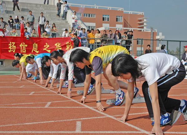 今天上午九點半,在簡短而隆重的開幕式結束后,我校第二屆運動會的各項賽事正式開始。此次運動的各項賽事得到了全校師生的積極參與,賽場上運動員奮力拼搏,啦啦隊熱情似火,充分展示了量院師生的生機與活力。經過上午的激烈競爭,已經產生若干項冠、亞、季軍,具體成績如下:   計量100米     男子:信息學院、信息學院、機電學院     女子:信息學院、管理學院、信息學院   計量800米     男子:機電學院、信息學院、信息學院     女子:機電學院、管理學院、人文學院   計量三級跳遠     女子:管理學院、機電學院、計量技術工程學院   計量標槍     男子:信息學院、機電學院、機電學院   現代科技100米     男子:信息學院、人文學院、機電學院     女子:信息學院、機電學院、法學院   現代科技800米     男子:法學院、機電學院、法學院     女子:機電學院、機電學院、信息學院   現代科技     女子:管理學院、生命科學學院、信息學院   教工組100米     男子:機關、信息學院、機電學院     女子:后勤服務公司、理學院、機電學院   教工鉛球     男子:信息學院、信息學院、圖書館
