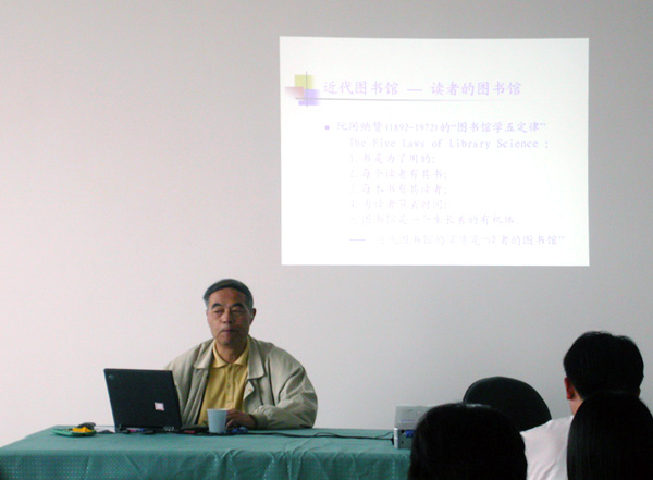 會議邀請了國際圖書館學會聯合會(IFLA)通訊委員、中國圖書館學會圖書館建筑與設備專業委員會顧問李明華研究館員作了題為《現代高校圖書館的發展》的學術報告。李明華先生以豐富的專業知識和閱歷,深入淺出地談了現代高校圖書館的發展,闡述了現代圖書館的內涵、機構性質和功能定位,還現場回答與會老師的提問。