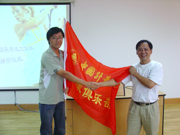 隨后,季建成給俱樂(lè)部理事會(huì)主席孔祥鵬同學(xué)授俱樂(lè)部部旗,孔祥鵬同學(xué)就網(wǎng)球俱樂(lè)部發(fā)展規(guī)劃發(fā)表了就職演說(shuō)。
