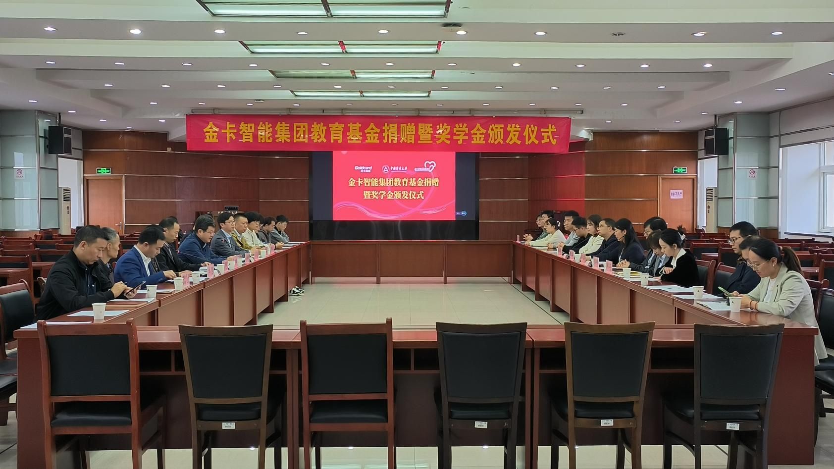 會上,金卡智能公益基金會向我校捐贈90萬元用于支持學生成長發展。孔明宣讀了金卡智能獎學金的獲得者名單,他鼓勵獲獎同學再接再厲、再創佳績,參會領導共同為獲獎學生頒發證書。