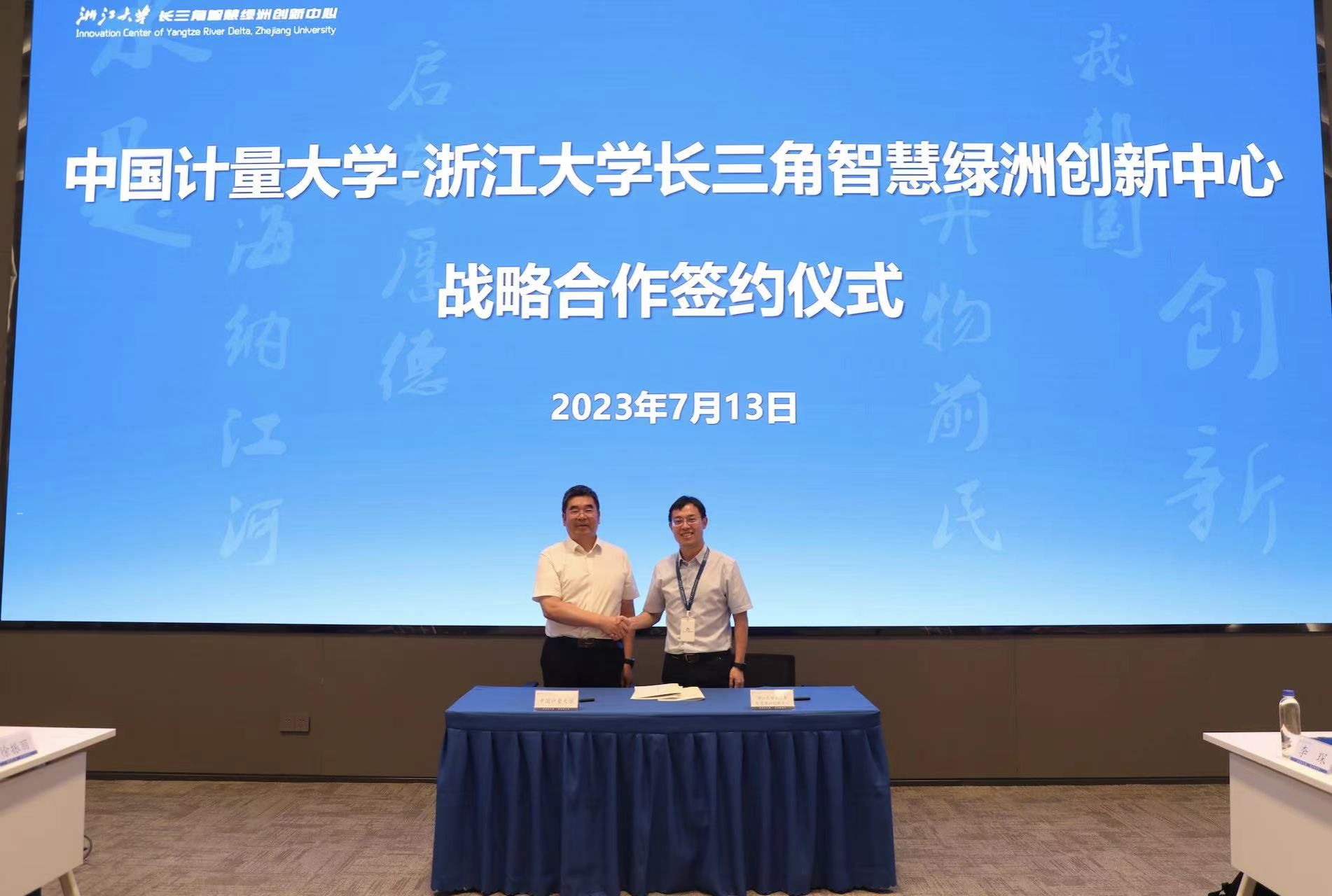 7月13日下午,我校與浙江大學長三角智慧綠洲創新中心戰略合作協議簽約儀式在嘉善縣祥符蕩科創綠谷舉行,浙江大學長三角智慧綠洲創新中心黨工委書記林偉連、主任范驍輝,副校長葛洪良出席簽約儀式并講話。嘉善縣科技局黨組成員、平臺人才科科長徐振麗,浙大長三角智慧綠洲創新中心各部門負責人,我校科研院、對外聯絡處、材化學院、質安學院、生命學院等單位負責人參加簽約儀式。