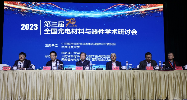 10月18日至21日,由中國稀土學(xué)會光電材料與器件專業(yè)委員會和中國計量大學(xué)主辦,昆明理工大學(xué)、云南省新材料制備與加工重點實驗和云南省光電材料國際聯(lián)合實驗室承辦的第三屆全國光電材料與器件學(xué)術(shù)研討會在昆明成功召開,來自北京大學(xué)、清華大學(xué)、浙江大學(xué)、中國科學(xué)技術(shù)大學(xué)、電子科技大學(xué)、廈門大學(xué)、華南理工大學(xué)、中科院上海光機所、中科院長春光機所等高校、科研院所、企業(yè)的光電材料與器件領(lǐng)域共500余名專家學(xué)者參加了此次會議。中國計量大學(xué)徐時清教授、昆明理工大學(xué)邱建備教授、華南師范大學(xué)楊中民教授擔(dān)任大會主席,中國計量大學(xué)張軍杰研究員、昆明理工大學(xué)楊正文教授、華南理工大學(xué)張勤遠教授擔(dān)任會議執(zhí)行主席。