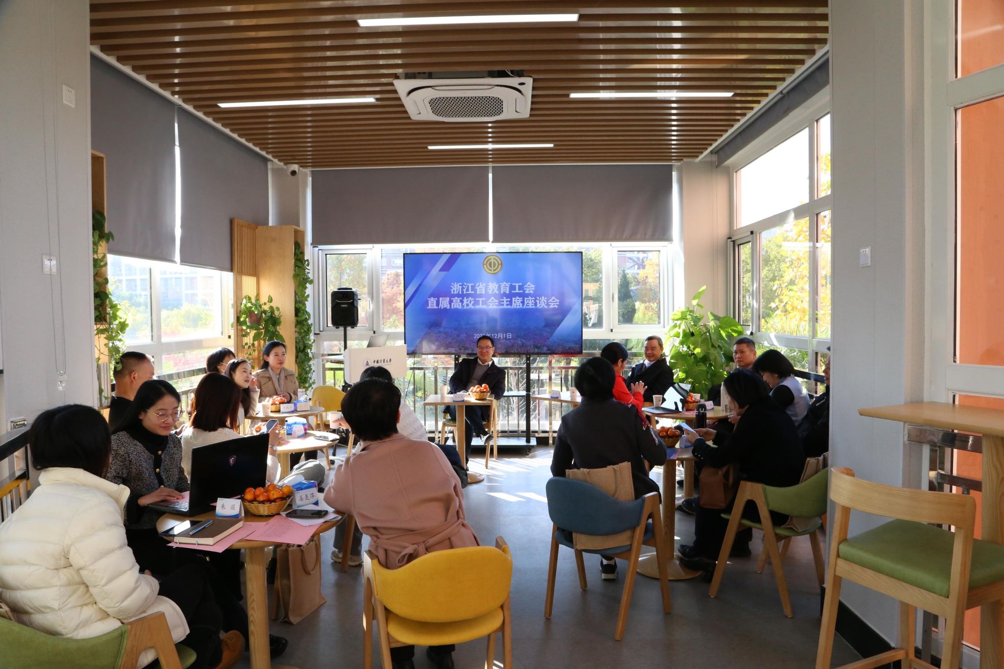 12月1日上午,省教育工會直屬高校工會主席座談會在我校教授文化長廊活動室召開,省總工會常委、二級巡視員、省教育工會主席王玉慶,校黨委副書記肖剛,省教育工會一級調(diào)研員葛海平以及浙江大學(xué)、浙江工業(yè)大學(xué)等11所高校工會主席參加座談會,會議由省教育工會副主席李茜主持。