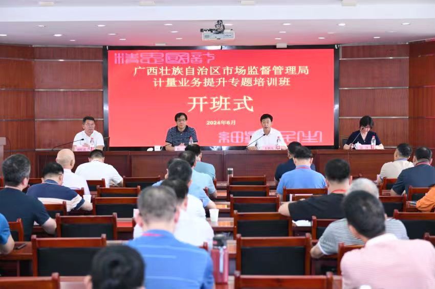 為進一步提升全區市場監管系統計量業務能力,“廣西壯族自治區市場監督管理局計量業務提升專題培訓班”于6月4日在我校正式開班。廣西壯族自治區市場監督管理局黨組成員姬二明、副校長王新慶、繼續教育學院院長劉紅波出席開班式,開班式由自治區市場監管局計量處處長溫萍主持。50余名來自廣西壯族自治區各地市場監管系統干部們參加了本次培訓。