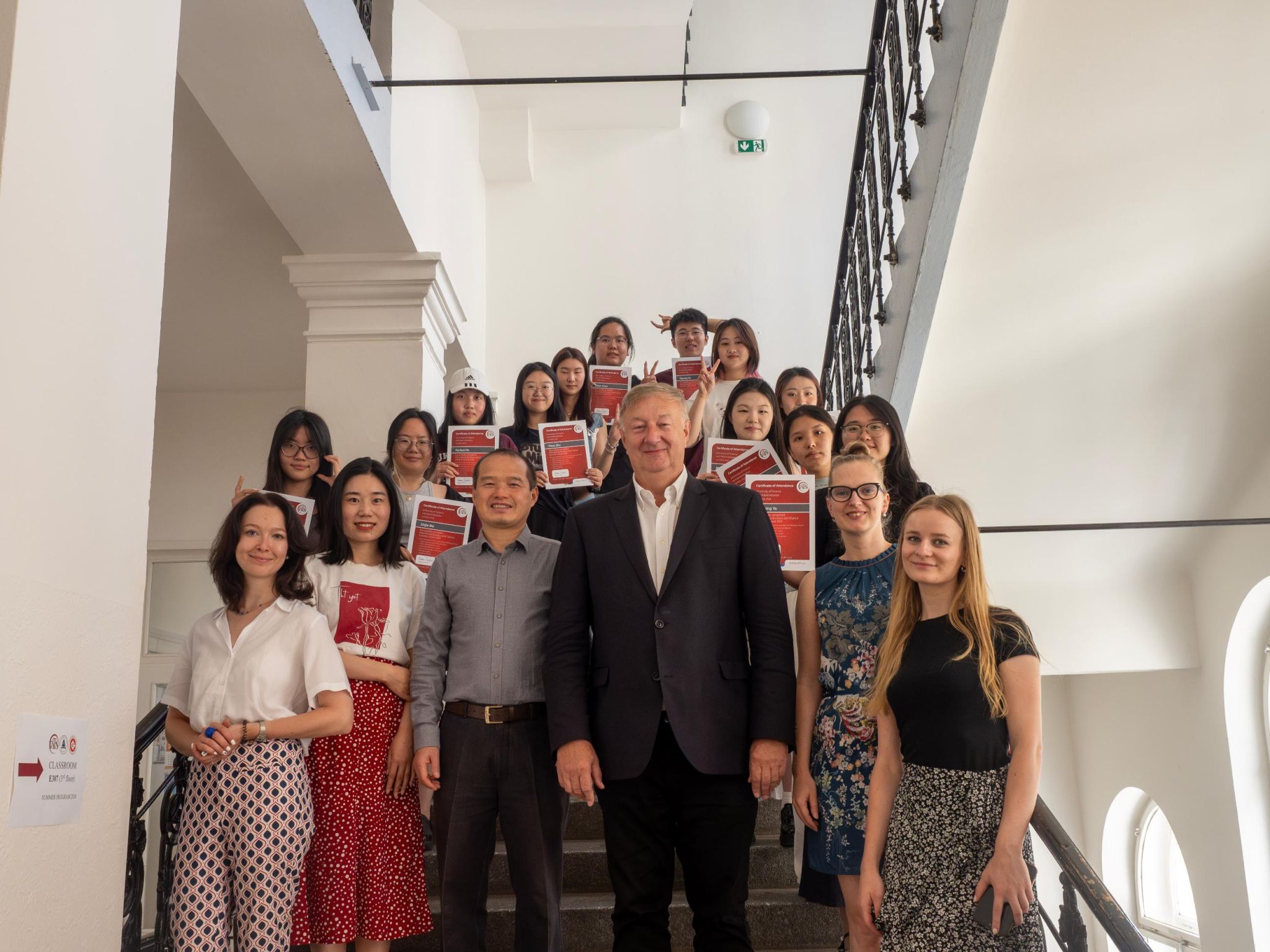 7月24日-8月9日,中國計量大學的7名學生和浙江金融職業學院的5名學生來到捷克首都布拉格,參加布拉格金融管理大學(V?FS)舉辦的為期兩周的布拉格國際夏令營。經過兩周充實的課程學習、企業參觀、文化探訪等,學生們順利完成了各項課程和活動,獲得了結業證書。此次布拉格夏令營讓學生們受益匪淺,開闊了視野,增長了見識,結交了新朋友,增進了友誼,激發了對多元文化的興趣,培養了獨立生活能力、環境適應能力、團隊合作精神、跨文化交際能力等。此次布拉格夏令營學行并重,為學生們打開了從布拉格看見世界的窗口,激勵學生們追求學業進步,勇敢擁抱和探索世界。