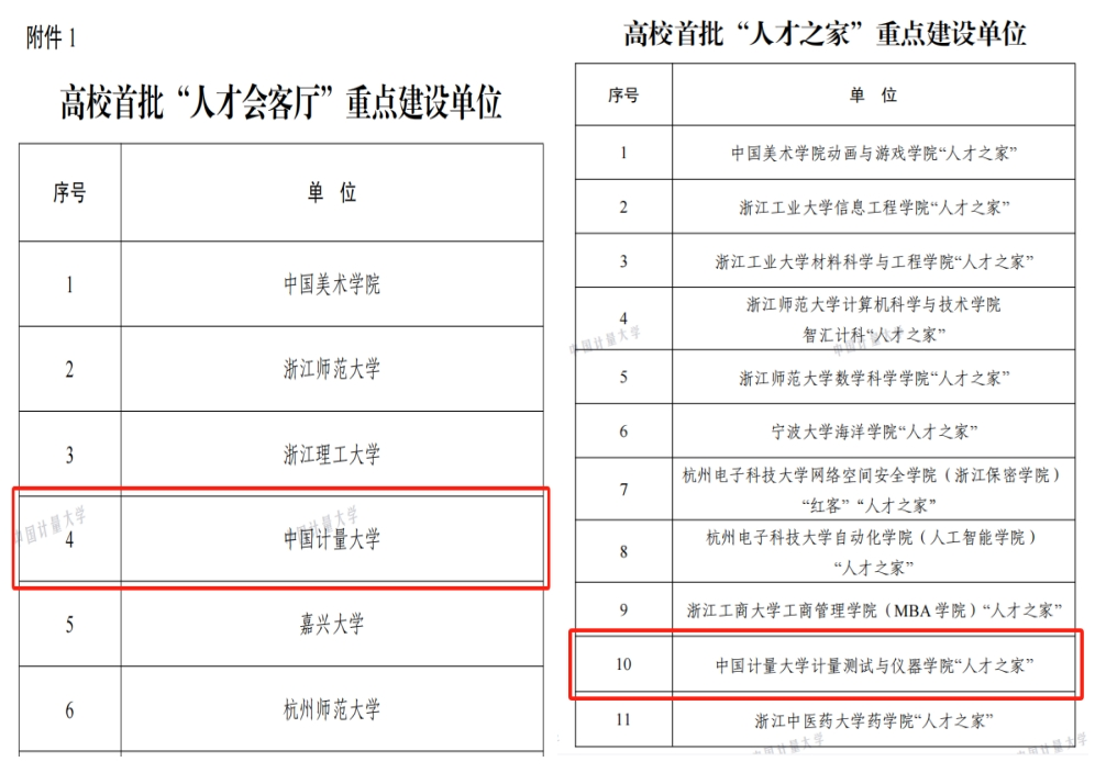 近日,中共浙江省委教育工作委員會辦公室公布了高校“人才家園”建設工程首批重點建設單位名單,全省共遴選出10家“人才會客廳”和35家“人才之家”重點建設單位。我校“人才會客廳”項目與計量測試與儀器學院“人才之家”項目成功入選。