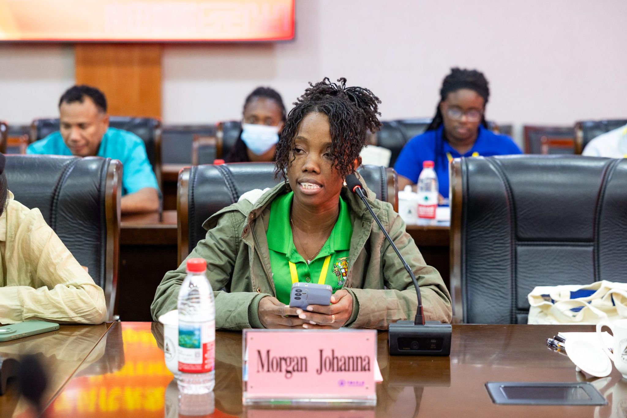 隨后,牙買加農業投資公司研發部植物保護員摩根·約翰娜·杰西卡(Morgan Johanna Jessica)代表全體學員發言。發言中,她首先向我國商務部、中國食品發酵工業研究院有限公司和我校致以感謝,介紹了牙買加在動植物保護和動植物檢驗檢疫等領域所取得的成果,暢談來華研修以來的學習收獲,并期待通過訪問我校,能在生命科學與動植物檢驗檢疫方面取得新知識與新經驗。