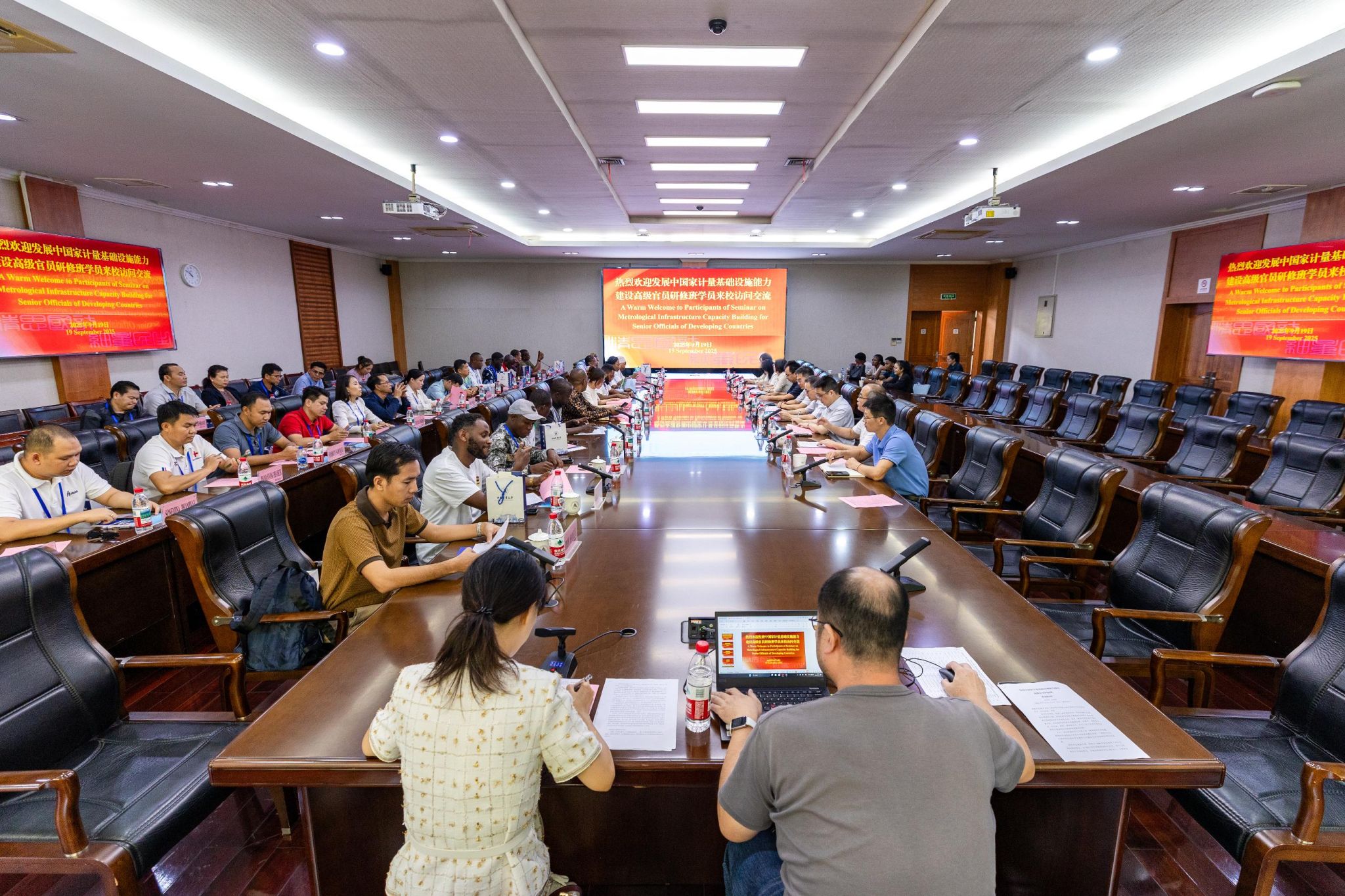 自由討論環節,我校相關教學單位和部門簡要介紹了各自工作領域、所獲成就以及國際合作與交流領域的主要成果。與會國家學員的代表分享了自身國家計量體系建設和發展現狀,并圍繞計量體系建設等方面提出了建設性咨詢意見,我校與會教學單位和部門給予了積極答復。