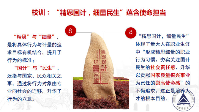 新中國成立70周年,由青年的風華正茂到壯年的砥礪前行,一言一行盡顯大國風范。我校建立41年,則像一位初出茅廬卻已雄姿英發的少年,為著時代復興大任破浪揚帆。“精思國計,細量民生”的校訓體現了量大人在職業生涯中“形成精思細量的職業行為習慣、夯實關注國計民生的社會責任感、升華以貢獻國家質量振興事業為己任的崇高使命感”的不懈追求。“這正是我們培養人才的根本目的。”張土喬說。