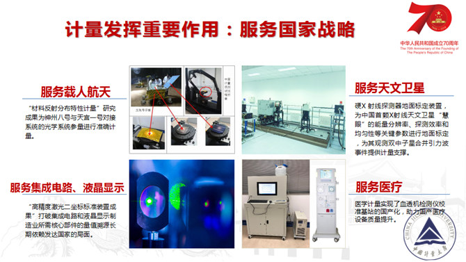 他向同學們展示計量在服務國家戰略過程中發揮著越來越重要的作用:為北斗導航系統提供地面基準鐘、在歐亞鏈路首次實現時頻傳遞、為三峽發電效率評價提供支持……計量還服務載人航天,比如“材料反射分布特性計量”研究成果為神州八號與天宮一號對接系統的光學系統參量進行準確計量。突破永磁材料高溫測量技術可以破解企業急需的測量難題,能源計量與管理控制系統能為企業節能環保服務。