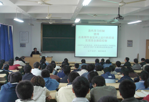 日前,浙江工業(yè)大學(xué)博士生博導(dǎo)孫明軒教授,應(yīng)邀來我校進(jìn)行學(xué)術(shù)交流并就“迭代學(xué)習(xí)控制方法與應(yīng)用”主題進(jìn)行了精彩的報(bào)告。控制理論與控制工程學(xué)科、檢測技術(shù)與自動化裝置學(xué)科的教師和機(jī)電工程學(xué)院在讀研究生及相關(guān)專業(yè)的學(xué)生一百多人參加了學(xué)術(shù)報(bào)告會。兩個多小時(shí)的報(bào)告內(nèi)容豐富、圖文并茂,大家都表示受益匪淺。會后孫明軒教授還與廣大同學(xué)進(jìn)行了學(xué)術(shù)交流。