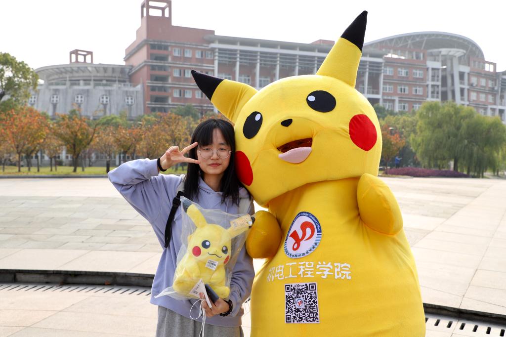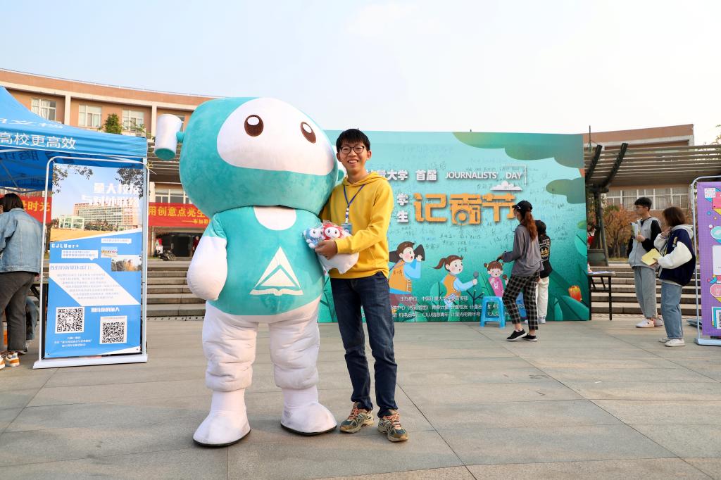 值得一提的是,校園吉祥物“量量”人像玩偶也現身活動現場。簽名墻前,藍色的“量量”朝著同學們熱情揮手,呼喚大家前來合影留念,學生們被“量量”萌化了,紛紛與“量量”合影,定格難忘瞬間。