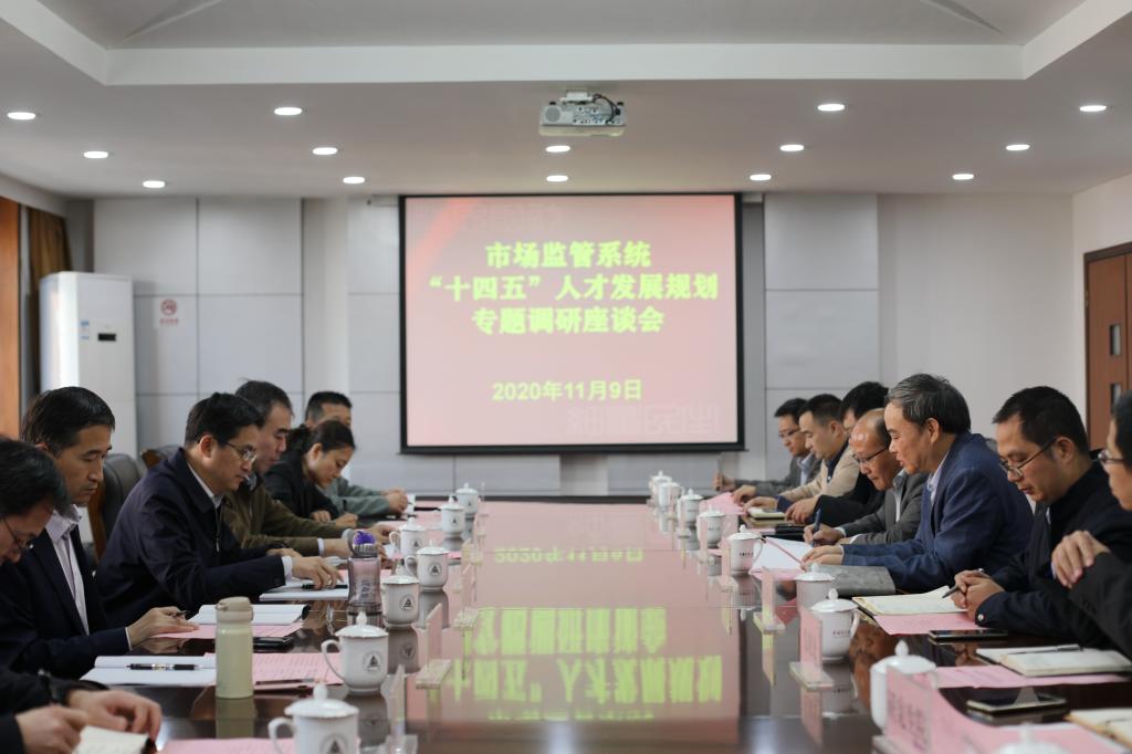 11月8日-9日,國家市場監(jiān)管總局“十四五”人才發(fā)展規(guī)劃編制調(diào)研組一行,由總局專業(yè)技術(shù)人才開發(fā)中心副主任劉朝暉帶隊(duì),來學(xué)校開展專題調(diào)研,并召開了市場監(jiān)管系統(tǒng)“十四五”人才發(fā)展規(guī)劃編制專題調(diào)研座談會。學(xué)校黨委書記張土喬、黨委副書記肖剛、副校長金尚忠熱情接待了調(diào)研組一行,人事處處長朱誠、繼教學(xué)院書記巢岺等相關(guān)部門負(fù)責(zé)人陪同調(diào)研。