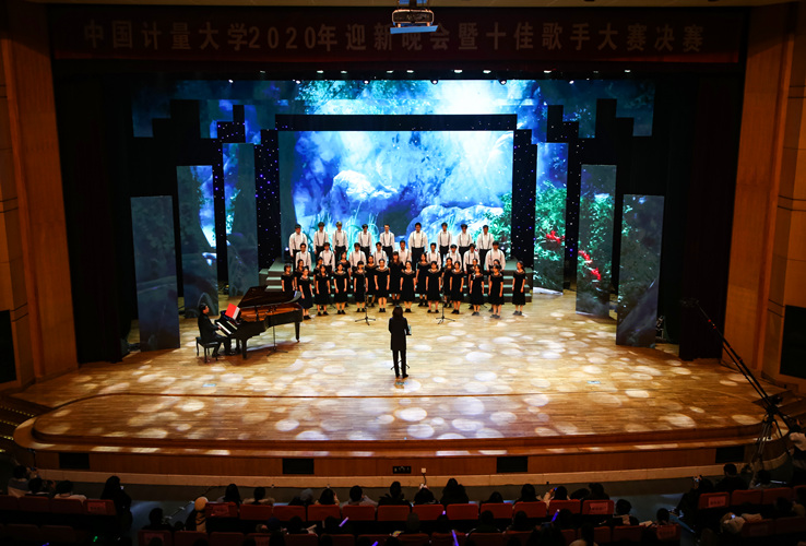 晚會(huì)在2019年省十佳歌手、最佳男歌手、現(xiàn)代科技學(xué)院學(xué)生吳禹鴻同學(xué)和中國(guó)好聲音學(xué)員、Rolling Zoo樂(lè)隊(duì)主唱、經(jīng)濟(jì)與管理學(xué)院學(xué)生錢江濤的歌聲中拉開(kāi)帷幕,校大學(xué)生藝術(shù)團(tuán)器樂(lè)團(tuán)的同學(xué)們?yōu)樗麄儸F(xiàn)場(chǎng)伴奏。懷揣著展現(xiàn)才華的渴望與洋溢青春的激情,選手們以飽滿的熱情、扎實(shí)的聲樂(lè)技巧將比賽一步步推向高潮,現(xiàn)場(chǎng)觀眾為自己支持的選手吶喊助威。比賽間隙,校大學(xué)生藝術(shù)團(tuán)和學(xué)生社團(tuán)為全場(chǎng)觀眾帶來(lái)了精彩的節(jié)目表演,量聲語(yǔ)藝團(tuán)的朗誦《啟航》,送給每一位2020級(jí)的新生;嘉量舞蹈團(tuán)的舞蹈《覓光》,大氣磅礴,重回那段尋求光明的動(dòng)蕩年代;STAR?T街舞社的街舞《誰(shuí)住在深海的大菠蘿里》,動(dòng)感的旋律,精心編排的群舞,展示大學(xué)生的青春面貌。最后壓軸,由均鐘合唱團(tuán)送上合唱作品《森林的祝福》和《Elhambo》,兩首作品榮獲本年度省大學(xué)生藝術(shù)節(jié)聲樂(lè)類一等獎(jiǎng),并入圍明年的第六屆全國(guó)大學(xué)生藝術(shù)展演活動(dòng),清新舒緩的節(jié)奏讓在場(chǎng)每個(gè)人都仿佛置身滿眼綠意的森林,感受初晨的第一縷陽(yáng)光。