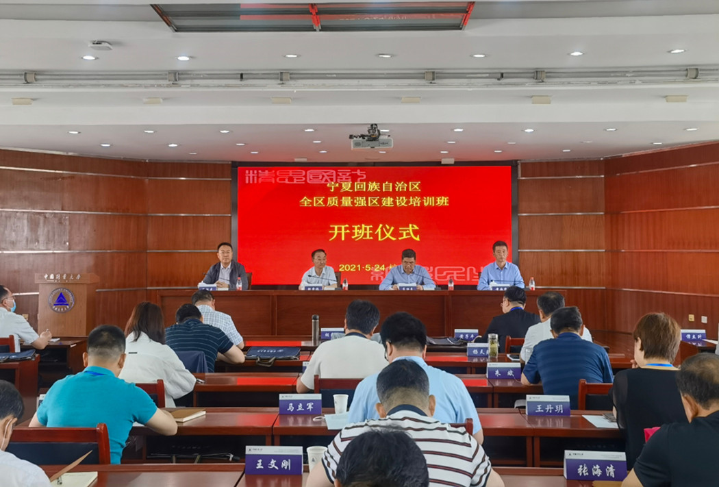 為深入貫徹落實(shí)習(xí)近平總書記視察寧夏重要講話精神和中央、自治區(qū)關(guān)于質(zhì)量工作的部署,進(jìn)一步增強(qiáng)各級(jí)政府及有關(guān)部門負(fù)責(zé)人“質(zhì)量第一,效益優(yōu)先 ”的高質(zhì)量發(fā)展意識(shí),提高質(zhì)量工作領(lǐng)導(dǎo)水平,加快推進(jìn)質(zhì)量強(qiáng)區(qū)建設(shè),“寧夏回族自治區(qū)全區(qū)質(zhì)量強(qiáng)區(qū)建設(shè)培訓(xùn)班”于5月25日在我校開(kāi)班。寧夏回族自治區(qū)市場(chǎng)監(jiān)管廳一級(jí)巡視員胡鑫德,我校黨委委員、副校長(zhǎng)葛洪良,自治區(qū)市場(chǎng)監(jiān)管廳質(zhì)量發(fā)展處處長(zhǎng)路潤(rùn)虎出席開(kāi)班儀式并講話。儀式由繼續(xù)教育學(xué)院院長(zhǎng)黃海清主持。