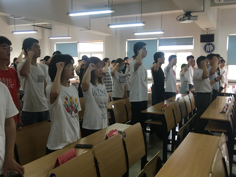 標準化學院組織師生黨員在圖書館7樓馬克思主義中國化研究與傳播中心舉行重溫入黨誓詞活動。儀式在奏唱《國際歌》中拉開序幕,師生黨員肅穆站立,面向黨旗,在黨總支書記陳剛的領誓下,全體師生黨員舉起右手,莊嚴宣誓,鏗鏘有力的宣誓聲響徹大廳,重溫中國共產黨人不忘初心、牢記使命的莊嚴承諾。