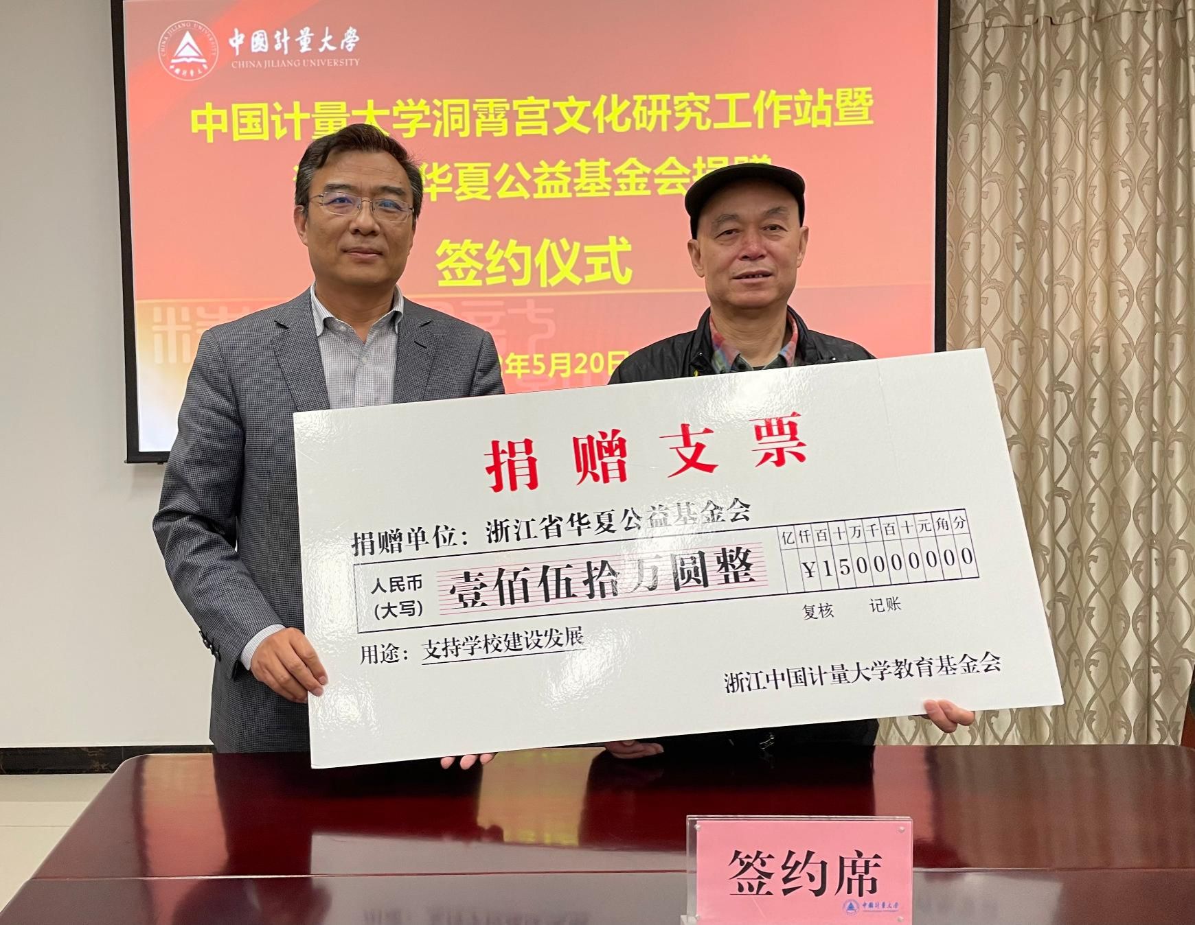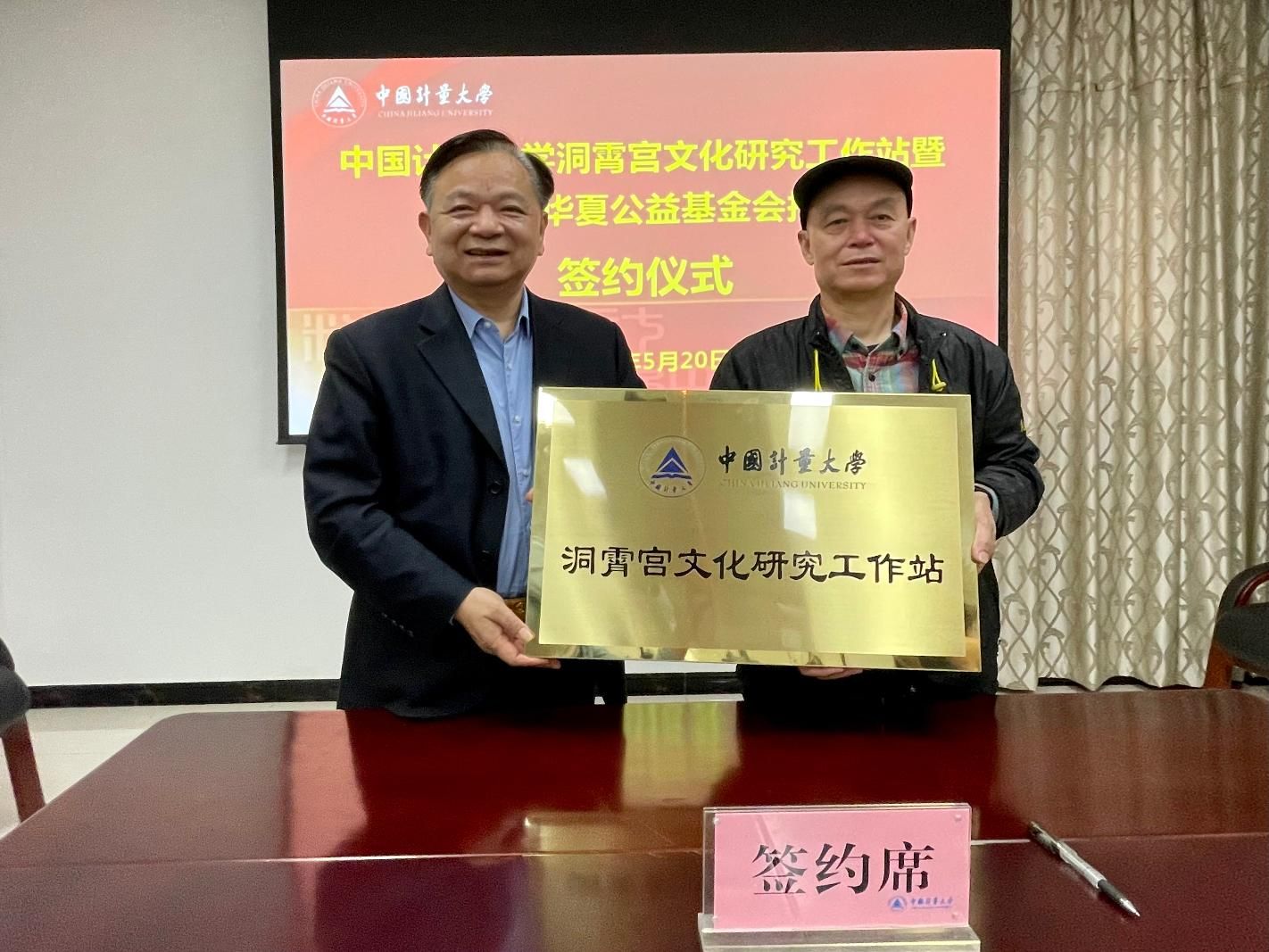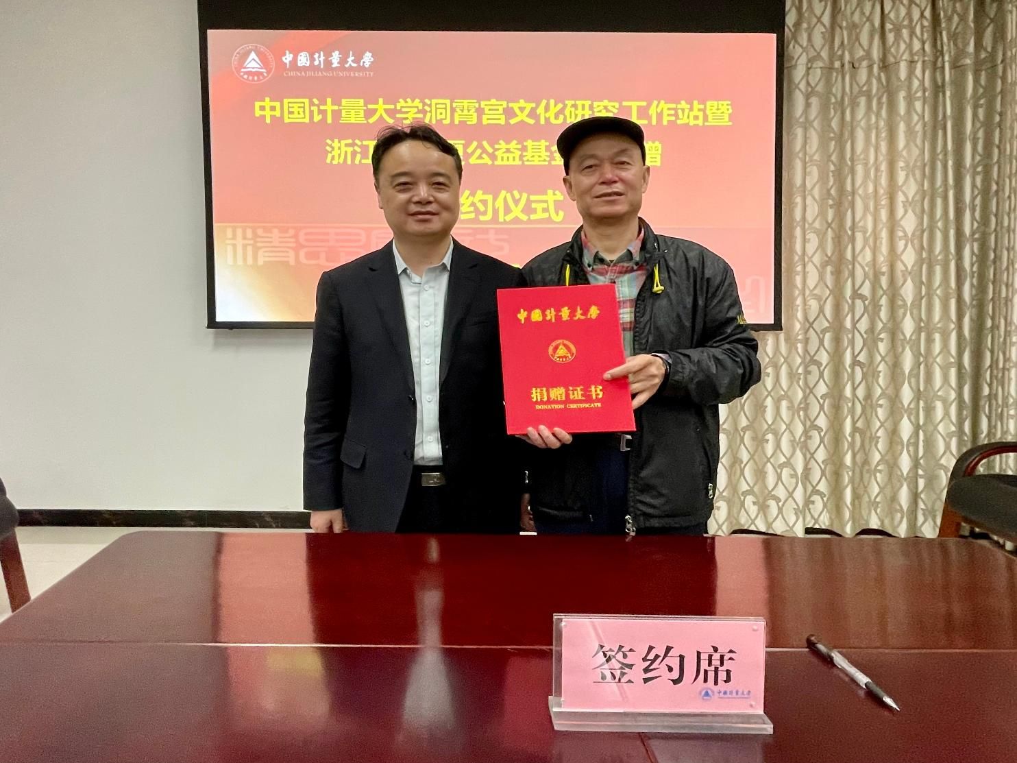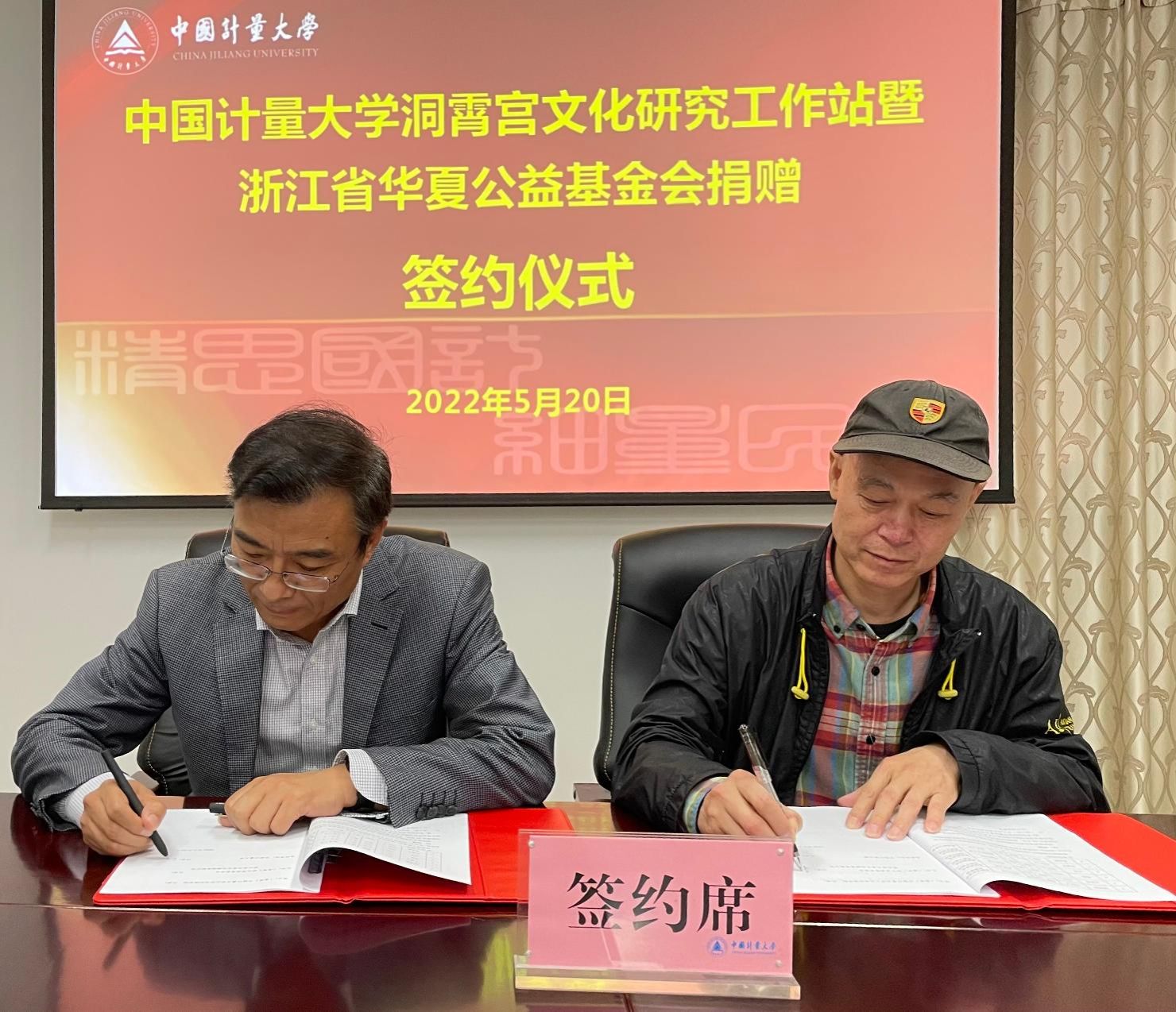 5月20日,在第23個世界計量日到來之際,中國計量大學洞霄宮文化研究工作站暨浙江省華夏公益基金會捐贈簽約儀式在浙江省健康系統工程研究院舉行。省發改委原副書記、副主任焦旭祥,浙江省健康系統工程研究院秘書長、浙江省華夏公益基金會副理事長俞樹盛參加儀式。校長徐江榮,校發展委員會副主任、校友總會會長馮時林,計劃財務處、對外聯絡處、人文與外語學院負責人參加簽約儀式。儀式由對外聯絡處負責人主持。