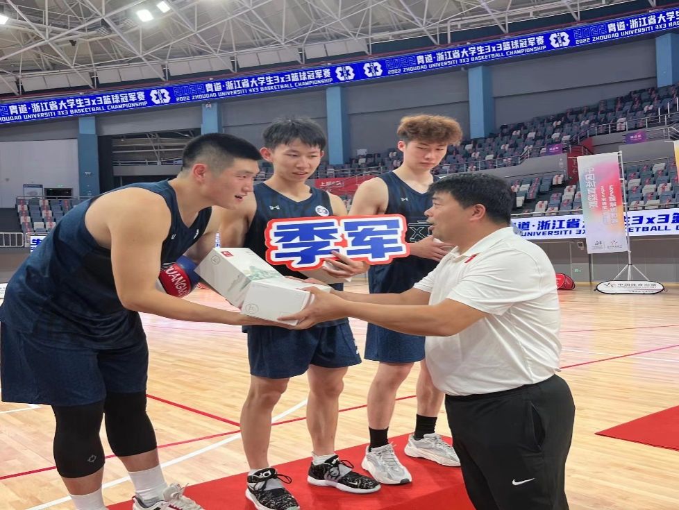 文能提筆安天下,武能上馬定乾坤。2022年6月12日,浙江省大學(xué)生3v3籃球冠軍賽決賽在杭州黃龍?bào)w育場(chǎng)落下帷幕。本次冠軍賽第一階段在各校開(kāi)展海選賽,48支隊(duì)伍入圍最終的決賽,我校籃球隊(duì)成員在主教練錢(qián)同進(jìn)老師的帶領(lǐng)下,經(jīng)過(guò)連續(xù)三晚的激烈拼搏,勇奪本次賽事季軍。