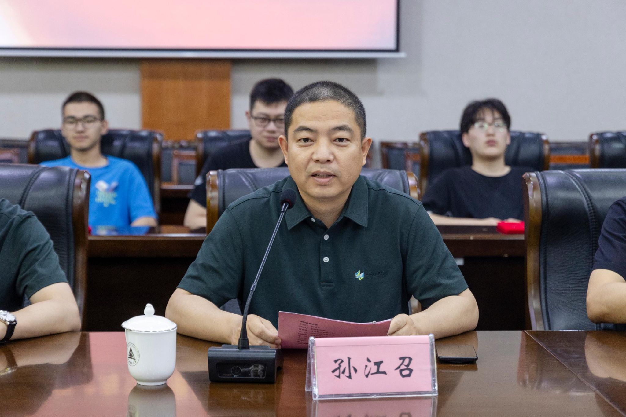 海克斯康制造智能技術(青島)有限公司華東事業群副總裁孫江召,海克斯康制造智能技術(青島)有限公司公共與政府事務部總經理、中國計量大學精密測量與智能制造工程研究院執行院長王振環,海克斯康大中華區教育生態事業部總經理孫東辰等應邀參加。副校長王新慶出席會議并講話,教務處、學生處、對外聯絡處、機電學院、計測學院、光電學院、質標學院、能安學院等相關黨委負責人參加會議。會議由工程訓練中心、創新學院主任張松慧主持。